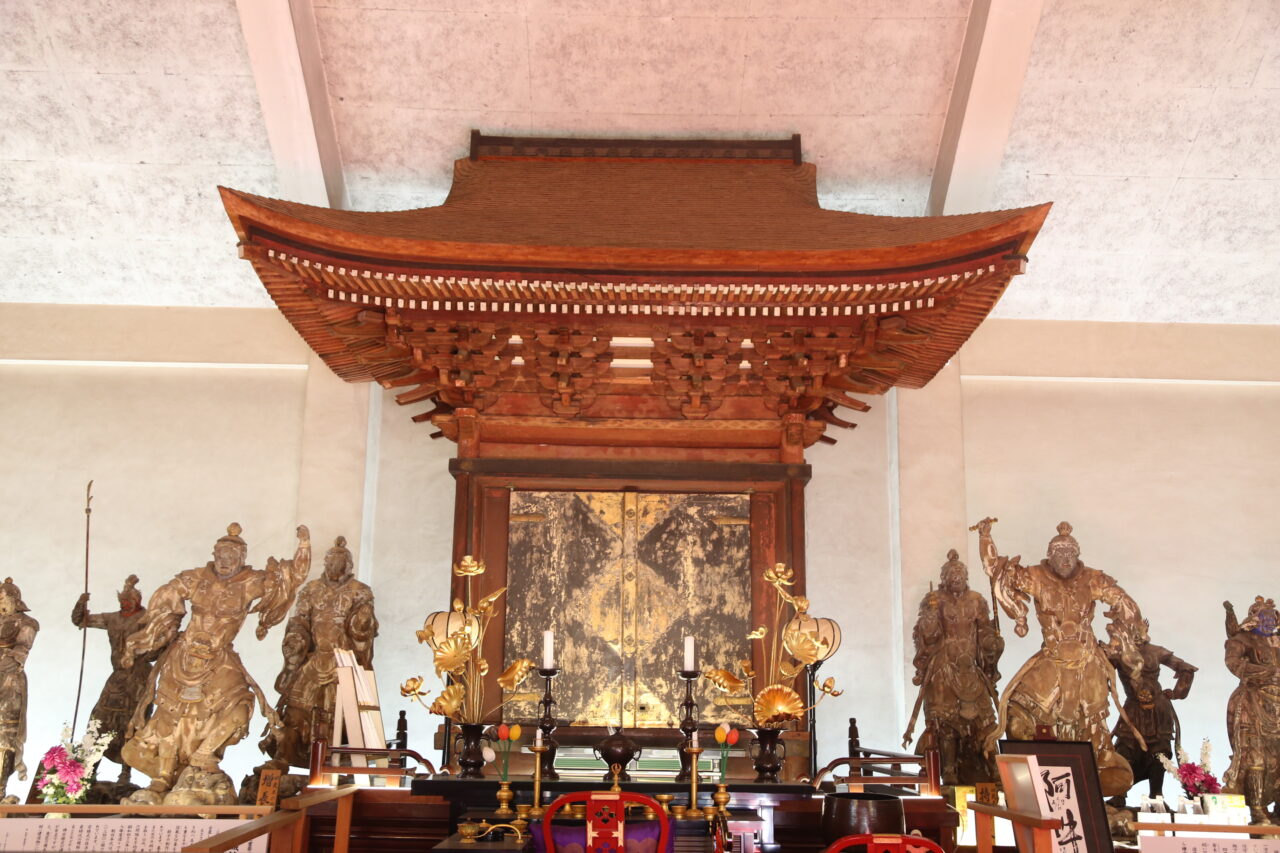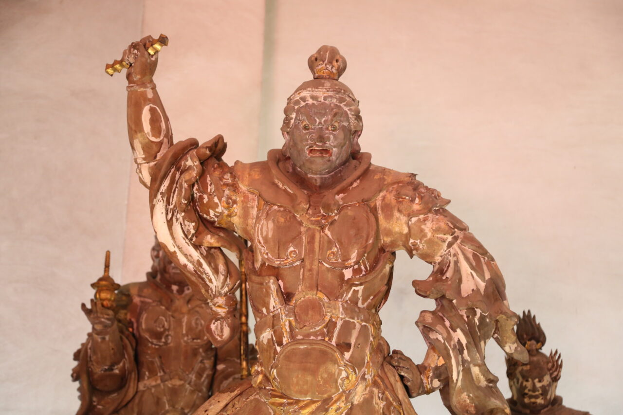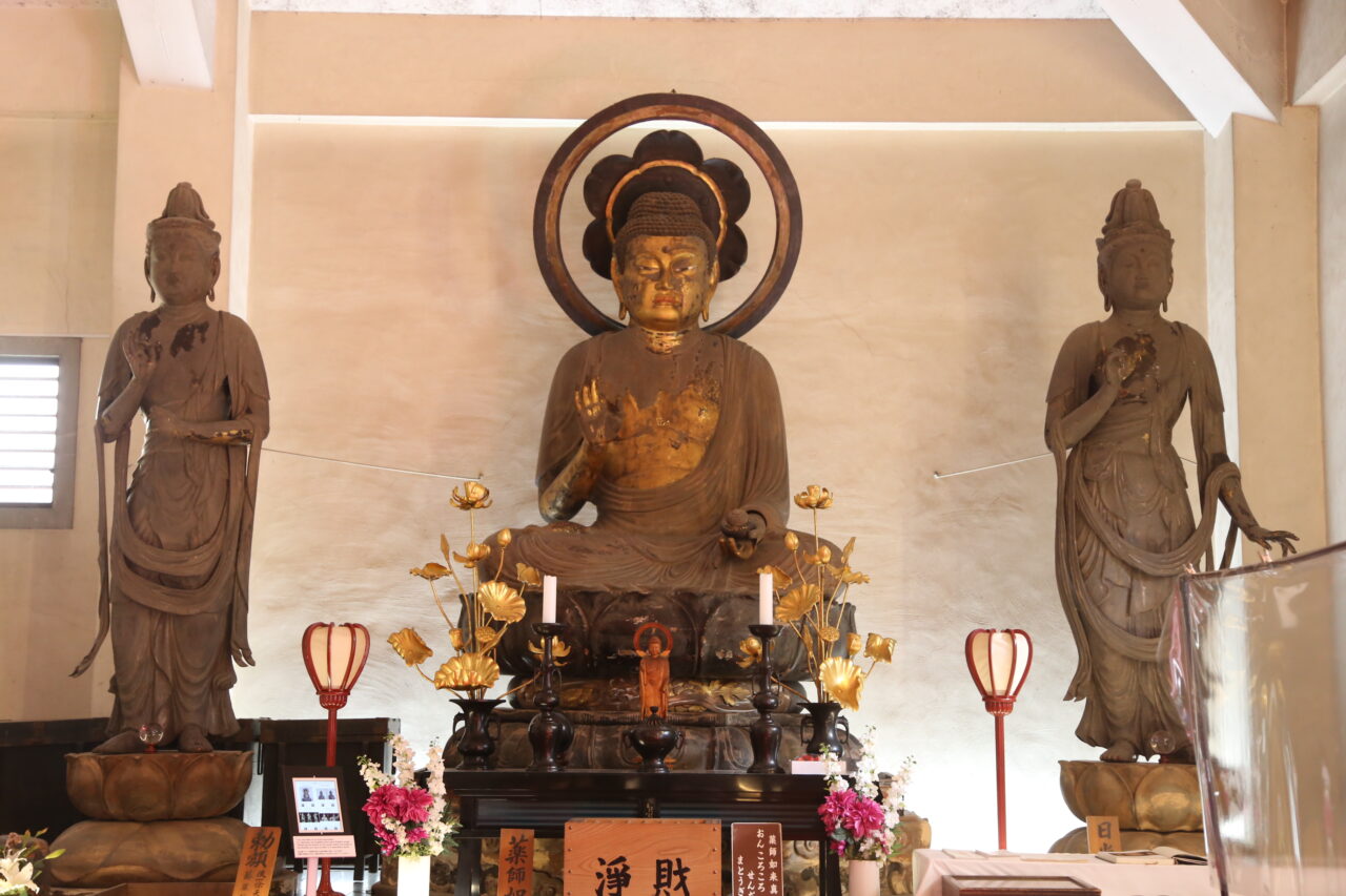 The temple houses a seated statue of Yakushi Nyorai, standing statues of Nikko and Gakko Bodhisattvas, a seated statue of Amida Nyorai, standing statues of the Four Heavenly Kings, and standing statues of the Twelve Heavenly Generals.All of these were made in the Kamakura period and are designated Important Cultural Properties.It is a must-see as you will never be able to see them up close like this.