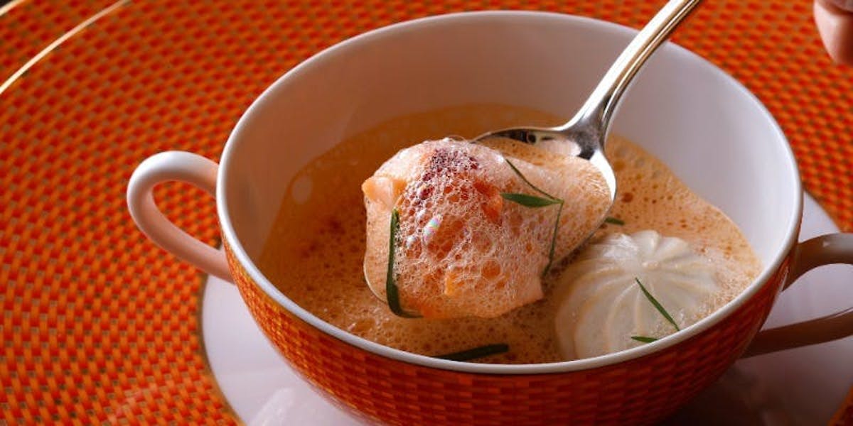 ・長野県産香茸のリゾット ・オマールブルーと冬野菜のロワイヤル カプチーノ仕立て