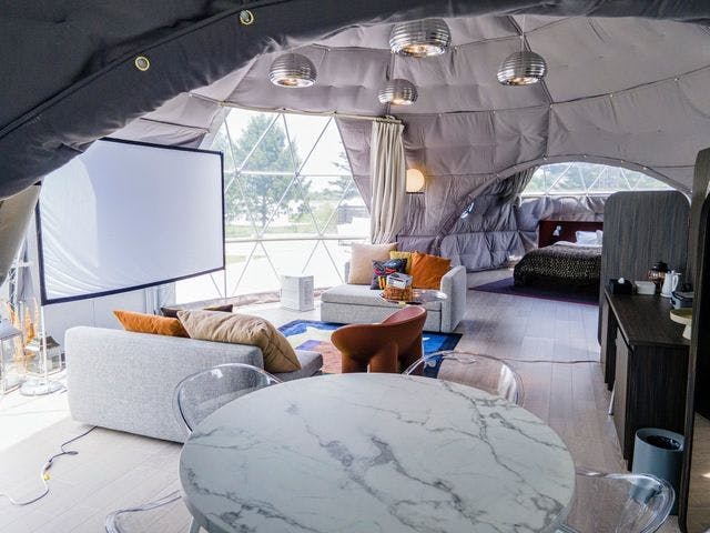 空調完備のテントやドーム、コンテナなど、施設形状は運営施設ごとに多様で、高級なアウトドア体験ができ、キャンプにありがちな不便さが取り除かれ、快適に過ごせるのが特徴です。