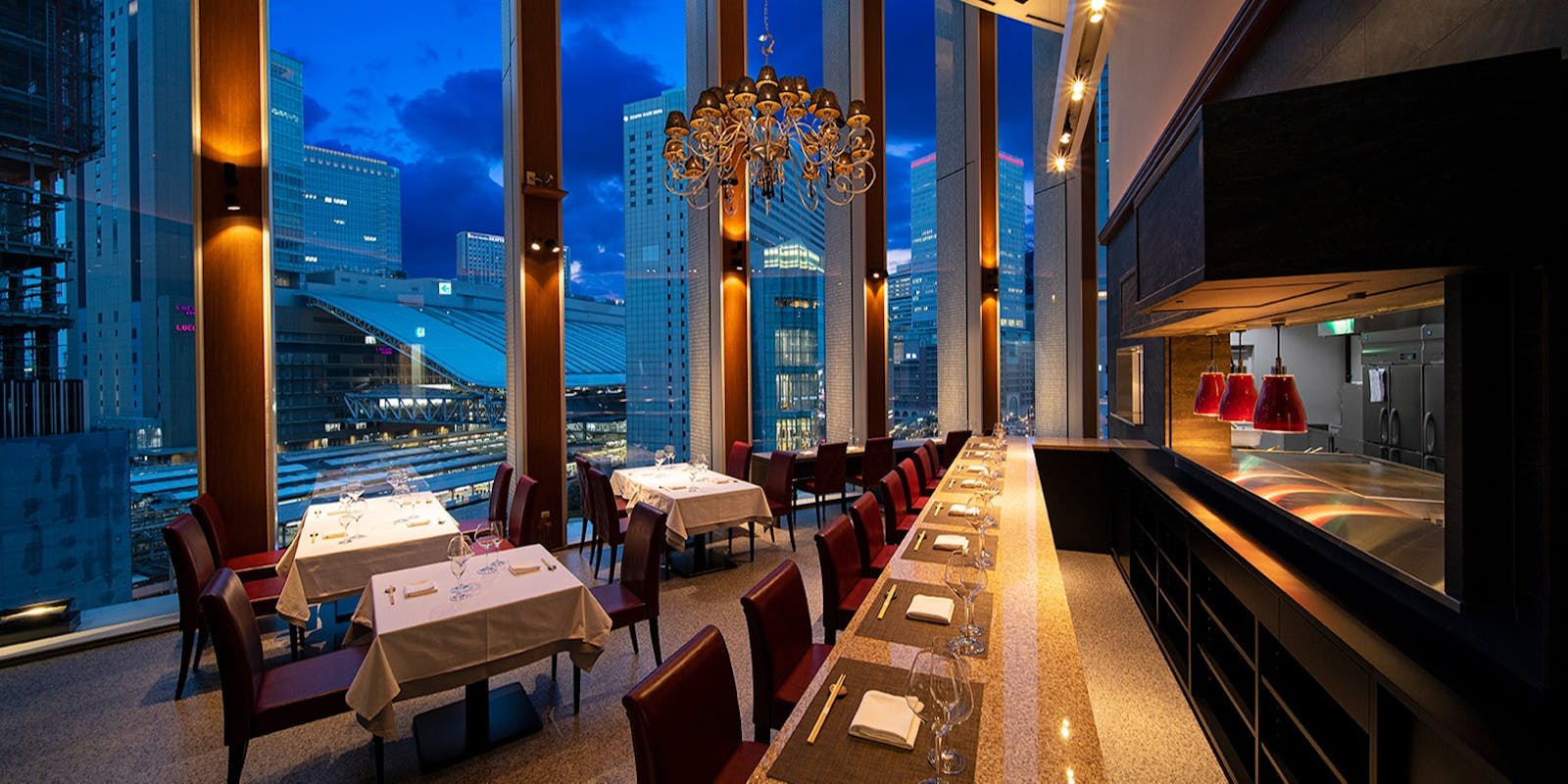 大阪駅近くの「ハービス ENT」の7階、ランチタイムは開放的な青空が、ディナータイムは夜景が広がるシックな大人な空間をお愉しみ頂ける好立地に位置する【Teppanyaki×Wineあかくろ】。当店は独自のルートから仕入れた極上牛と厳選した世界各国のワインをお愉しみ頂けるだけでなく、自慢のお肉にあわせて提供する様々な調理法で変化させた野菜10種はお肉料理をより一層に盛り上げ、「美味しい」だけでなく、「楽しい」と思って頂けるコース料理をご提供致します。また、店内には調理風景を遠目に見ながら楽しめるカウンター席、開放感溢れる眺望のテーブル席、プライベートな個室をご用意。普段使いから記念日・接待など、様々な用途でお使い頂けます。日常では味わえない素敵なひと時をお過ごしください 。(一休.comレストラン)