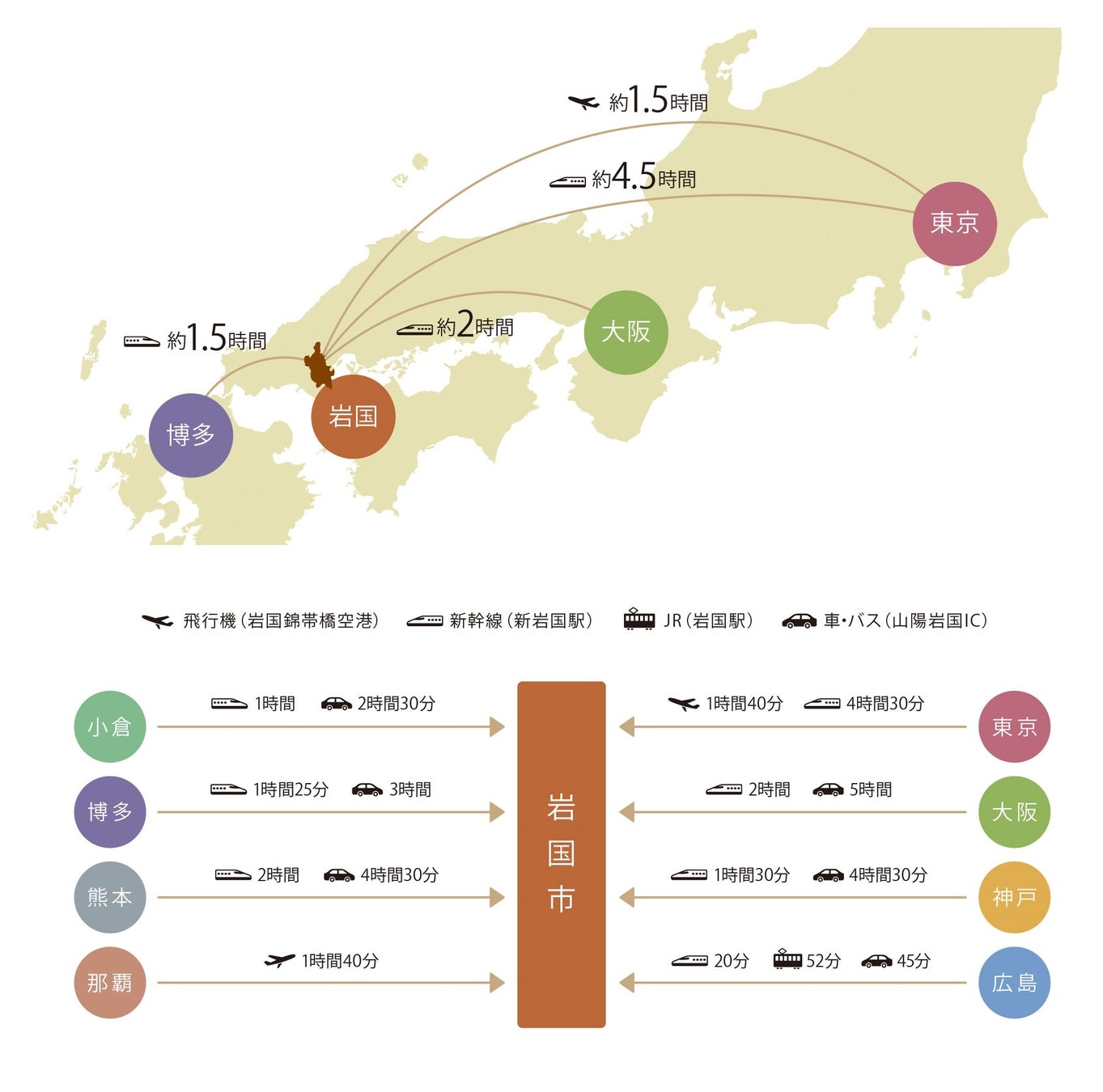 【飛行機を利用した場合】岩国錦帯橋空港-JR岩国駅-錦帯橋 約30分