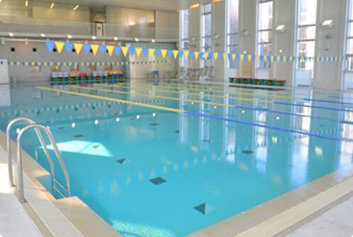 室内温水プールを使って行うため、天候に左右されず安心して楽しめます。
